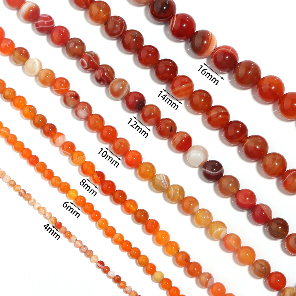 1 Strand Orange Natural Agate Loose Beads Gemstone Round Beads Natural Stone for Jewelry Making DIY 4/6/8/10/12mm