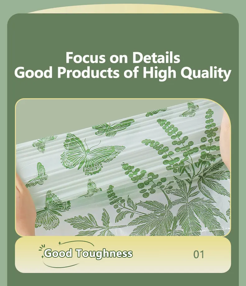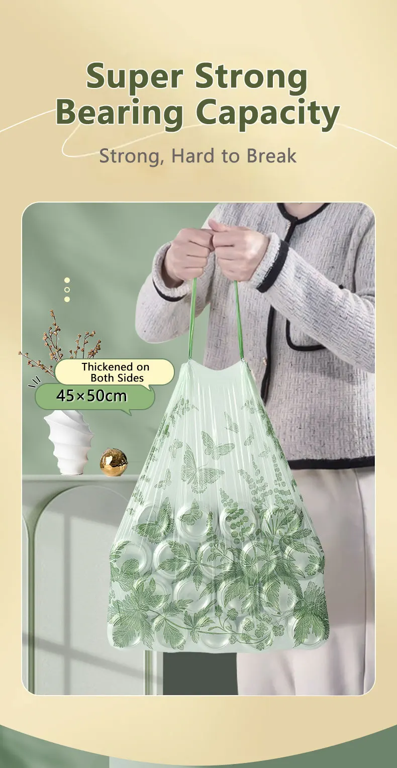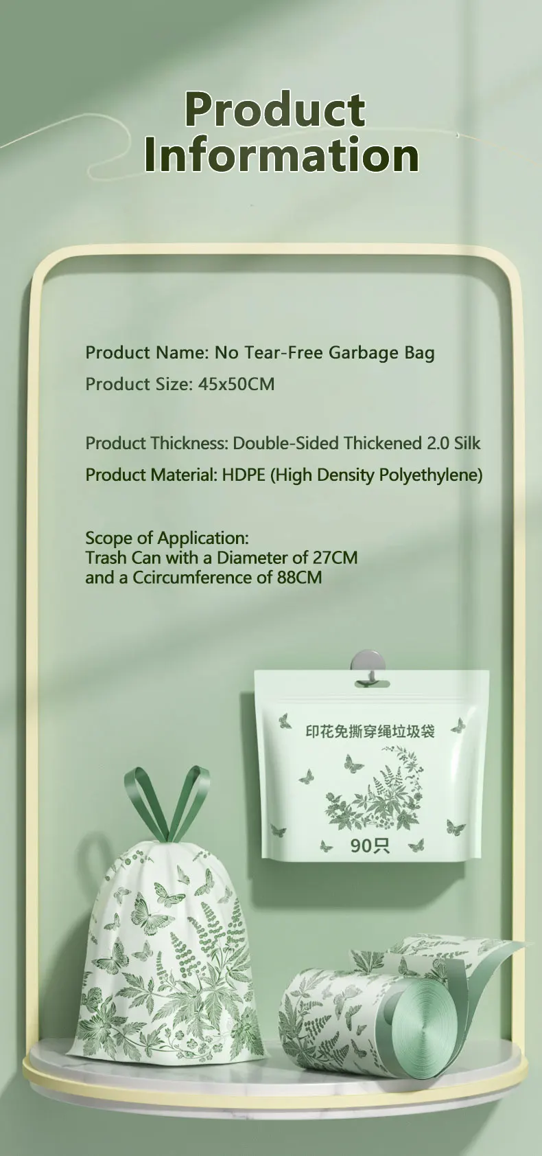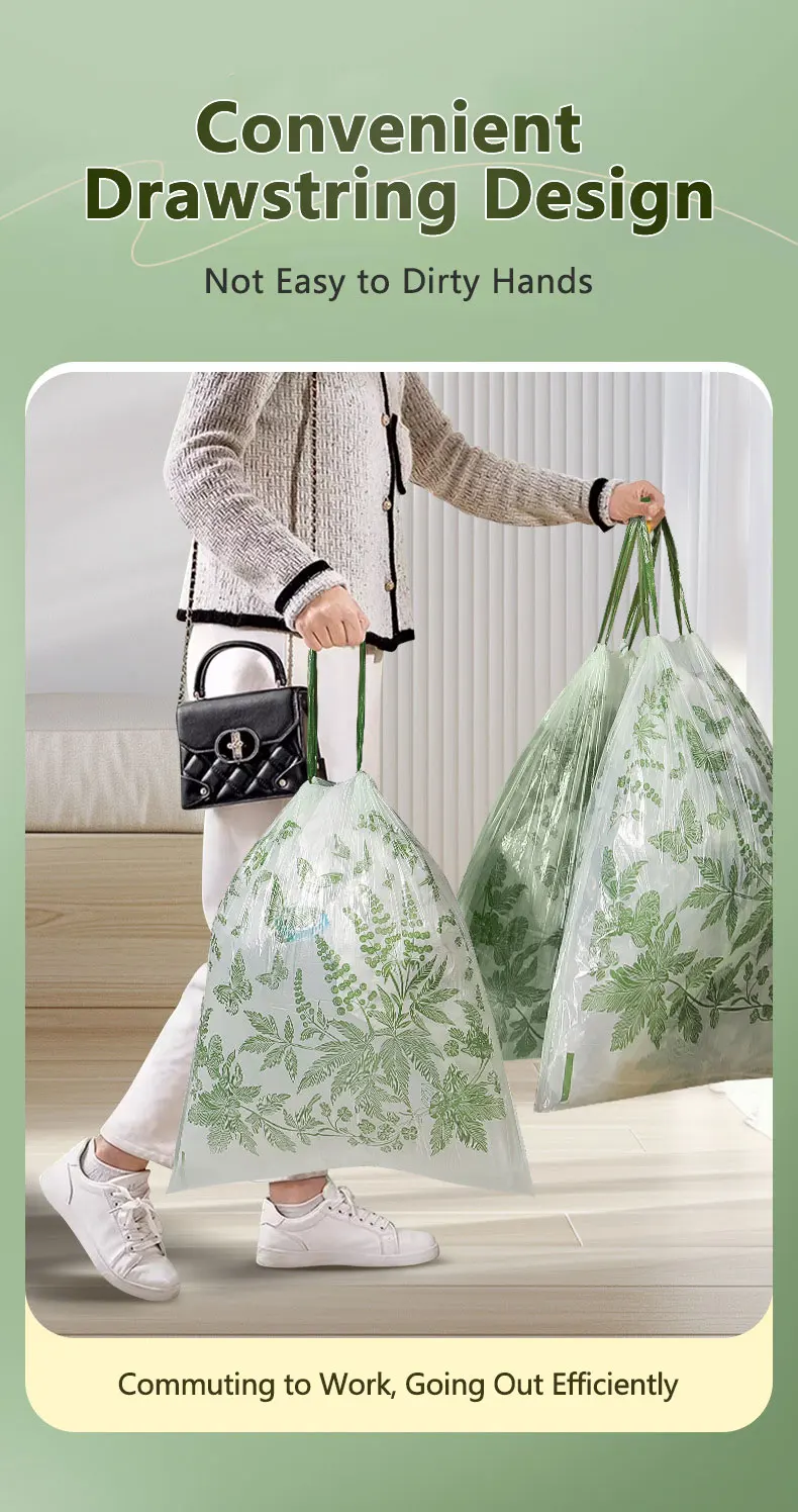 Tough Material, Not Easy to Break or Leak:Made of high-quality polyethylene material, strengthened by a special process, it has excellent toughness and strong load-bearing capacity. When facing sharp objects (such as bones, glass shards) or heavy garbage, it is not easy to be cut or torn, effectively preventing garbage leakage from polluting the environment and solving your worries when taking out the garbage.