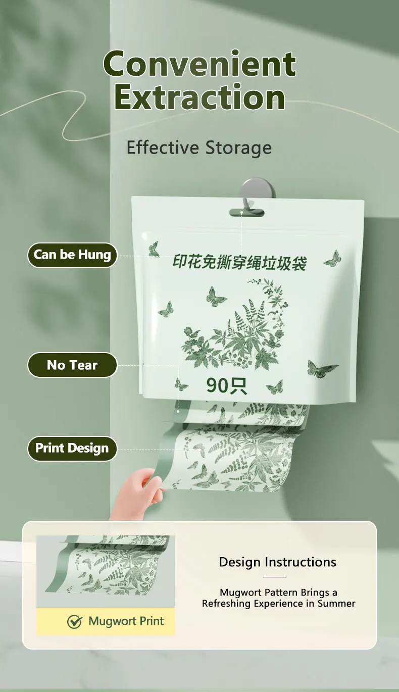 Easy-to-Draw Design, More Convenient to Use:Adopting a scientific layered rolling process, each garbage bag is clearly separated and easy to draw without sticking or effort.