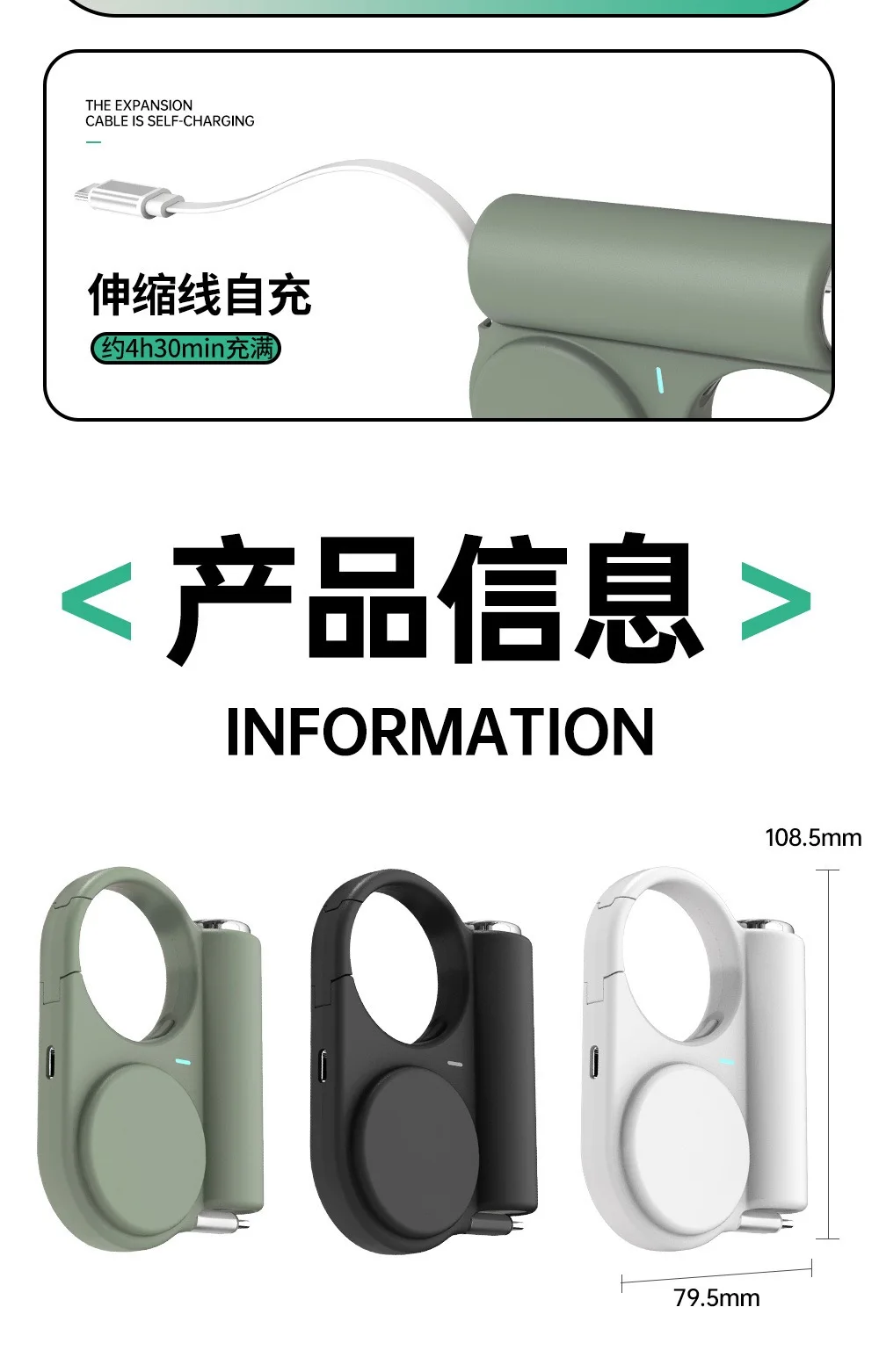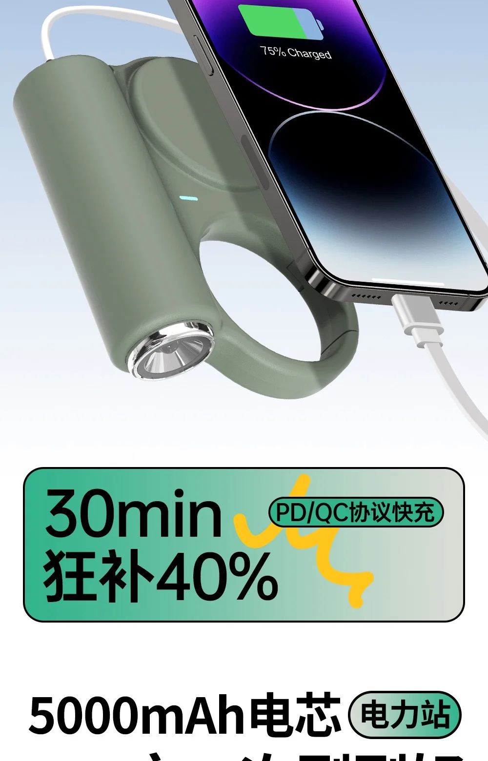 15W creative retractable built-in power bank with fast charging outdoor compact and portable 5000mAh mobile power bank