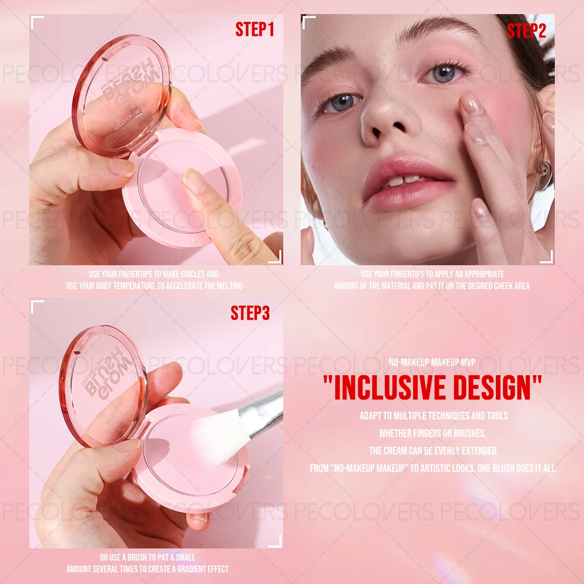 1PC Waterproof Blush Palette Pink Easy-to-Apply Natural 3D Makeup Look Blush Palette Matte Finishes in Red Hues Makeup Palette
