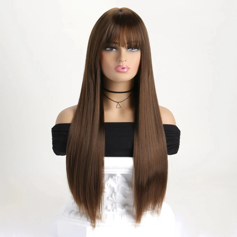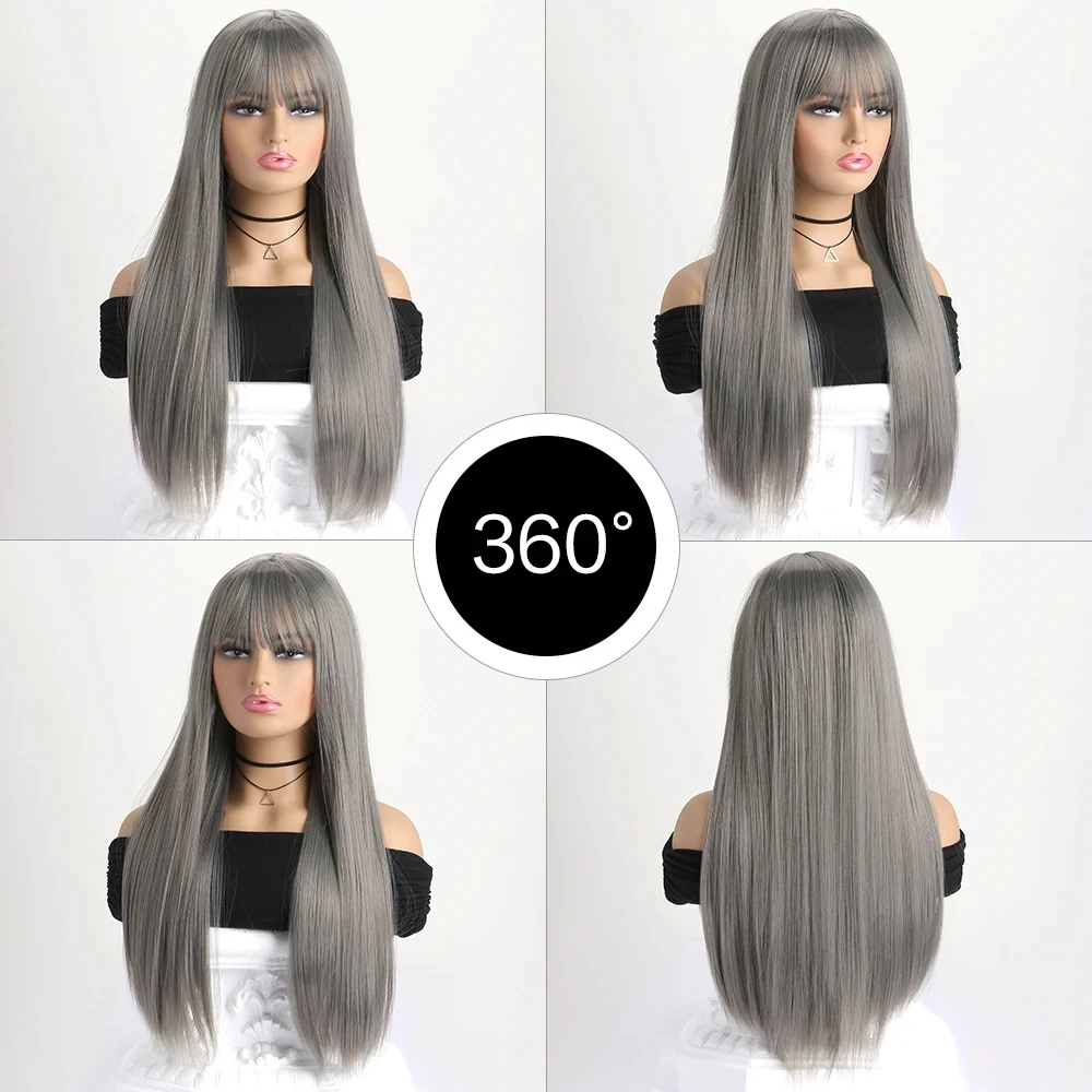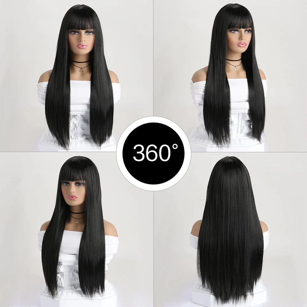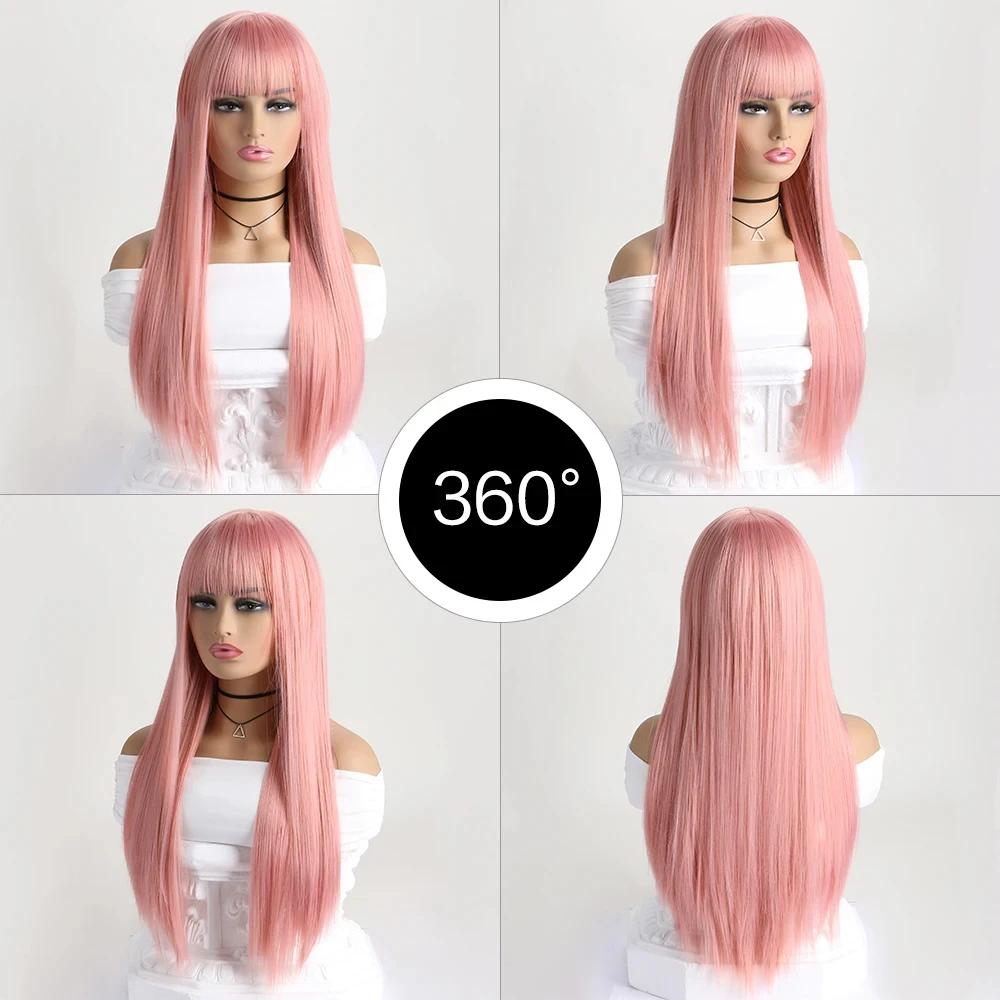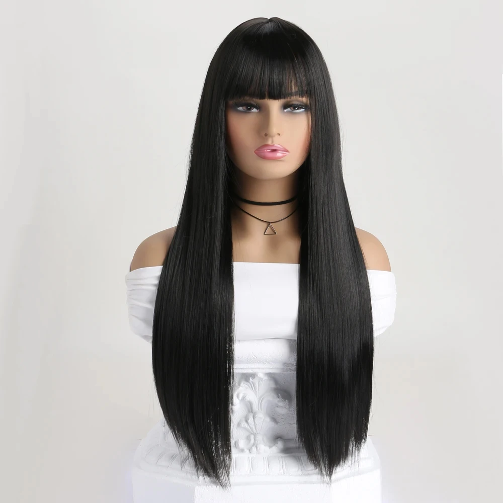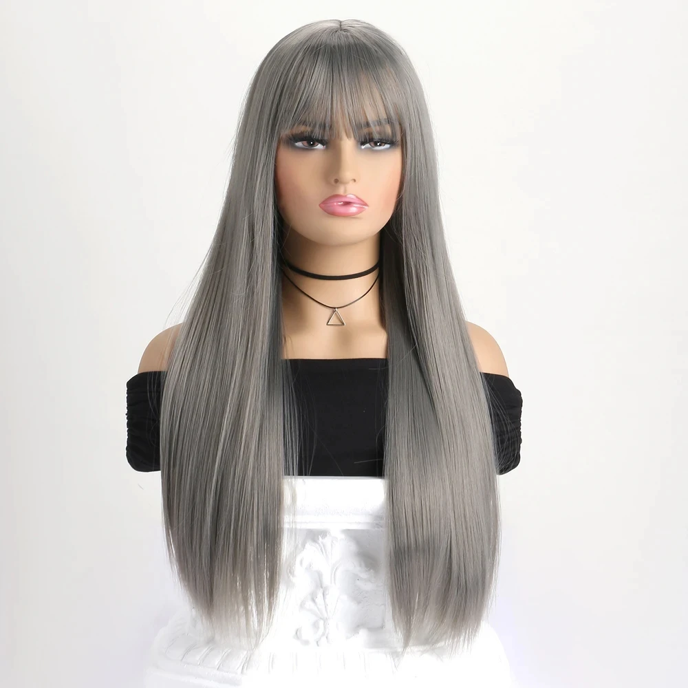 26-inch synthetic wig long straight hair cosplay Halloween costume everyday wig high-temperature hair accessory