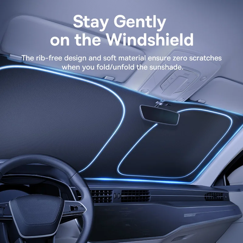 The rib-free design and soft edges ensure zero scratches when you fold/unfold the sunshade.
