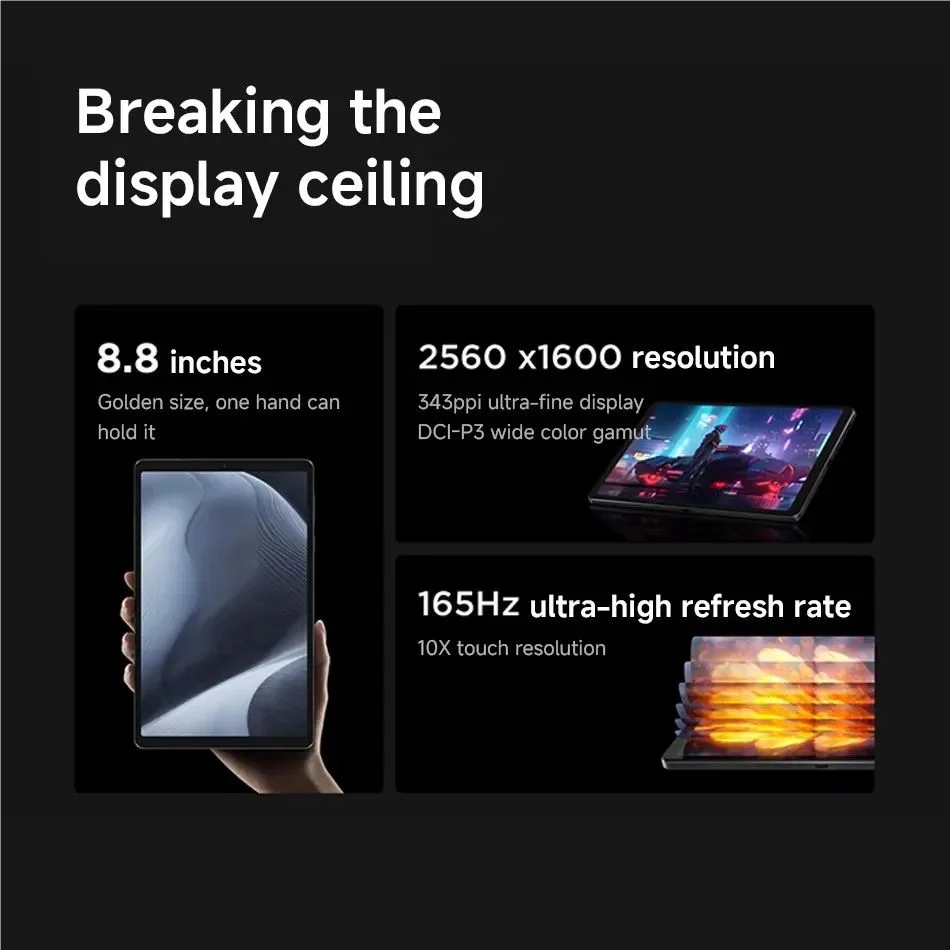 Screen: 8.8'' 165Hz LCD puresight Screen, Resolution:2560*1600 , 500nits