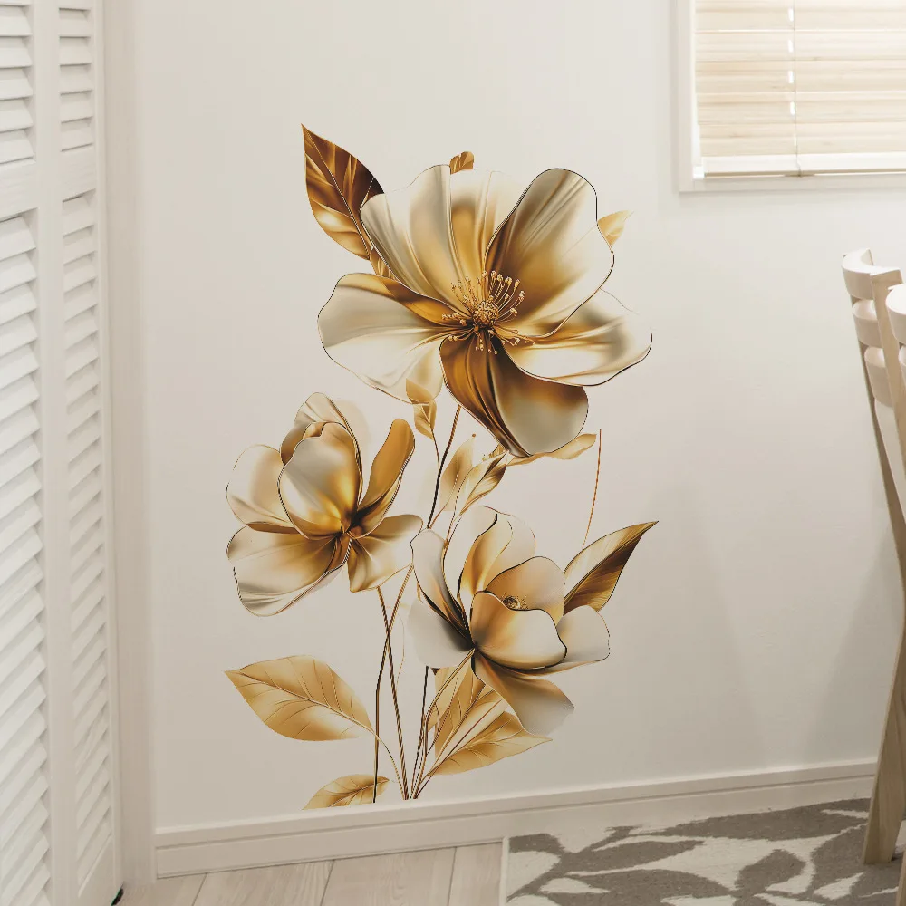 Creative Golden Floral Aesthetic Home Decoration Wallpaper Living Room Modern Art Mural Bedroom Toilet Decal Bathroom Wall Decor
