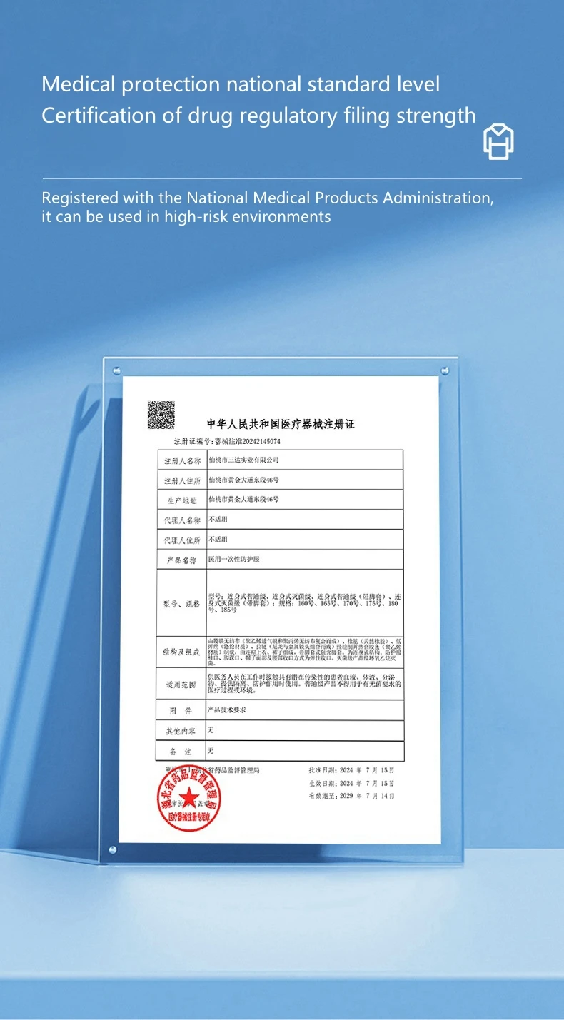 - Product name: Disposable one-piece protective clothing