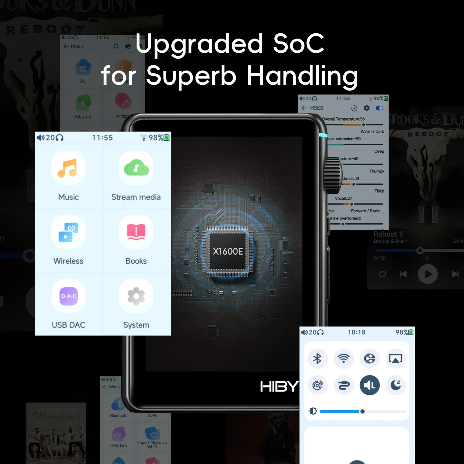 In-house developed digital audio mastering tuning board from HiBy, going beyond equalization to tune critical traits of your music such as tonal warmth, note thickness, vocal presence, instrumental airiness, etc. directly instead of trying to guess which equalizer band might roughly affect what you’re after!