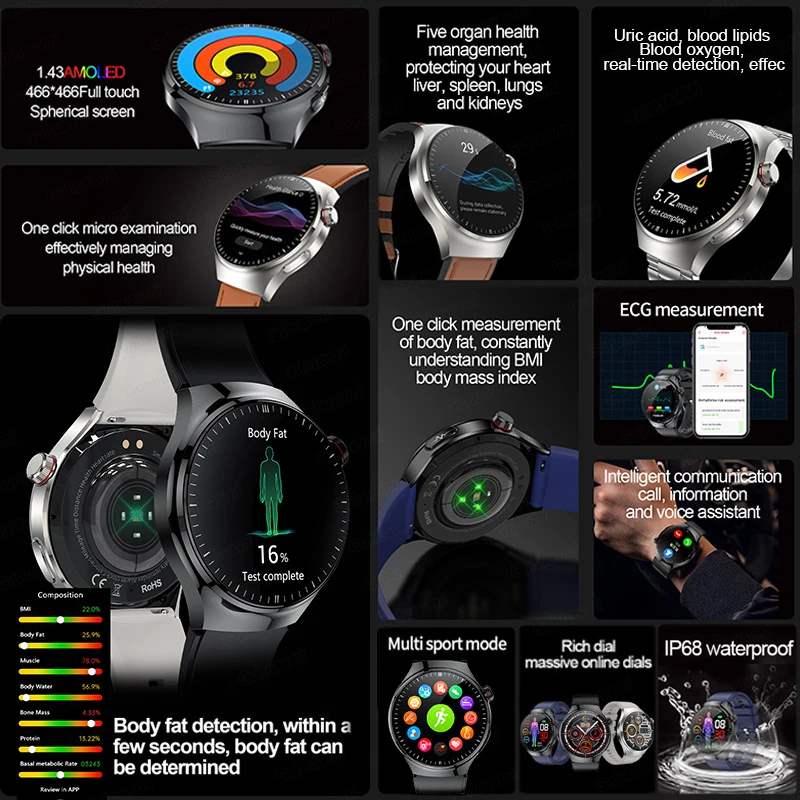 high-end Smart Watch Men Women Health Measurement Blood Oxygen Bp physical examination call UricAcid ECG Smartwatch Man exercise