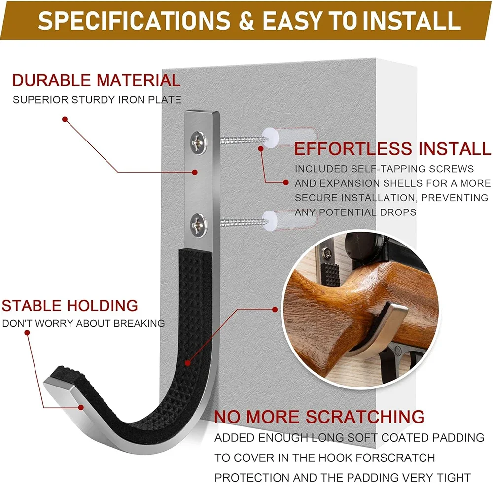 – The hooks feature a non-slip design that keeps your guns in place and prevents them from slipping or accidentally falling.