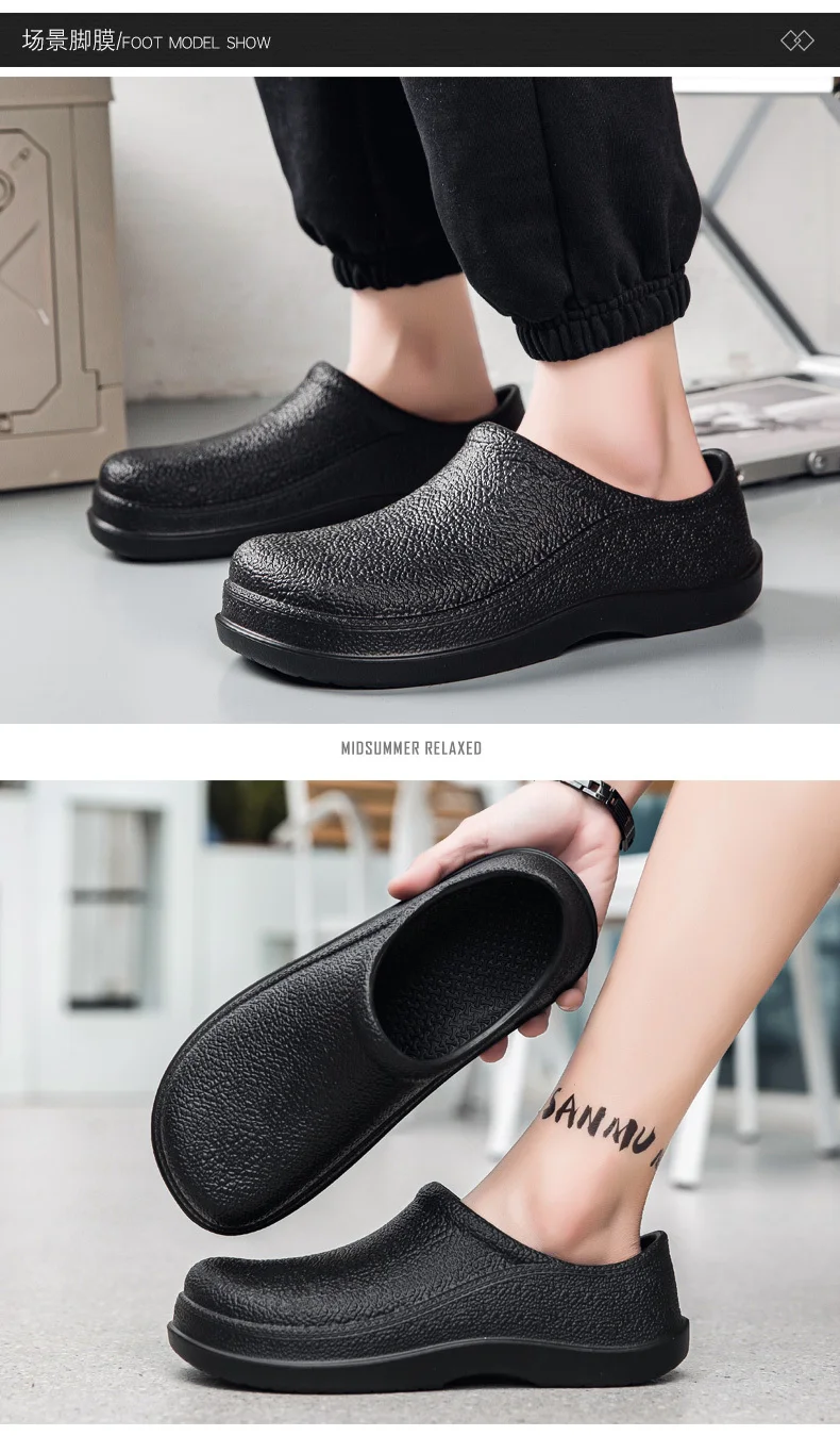 Men Chef Shoes Man Summer Beach Slippers Water-proof Oil-proof Kitchen Shoes Non-slip Garden Clogs Hotel Work Shoe EVA Sandal