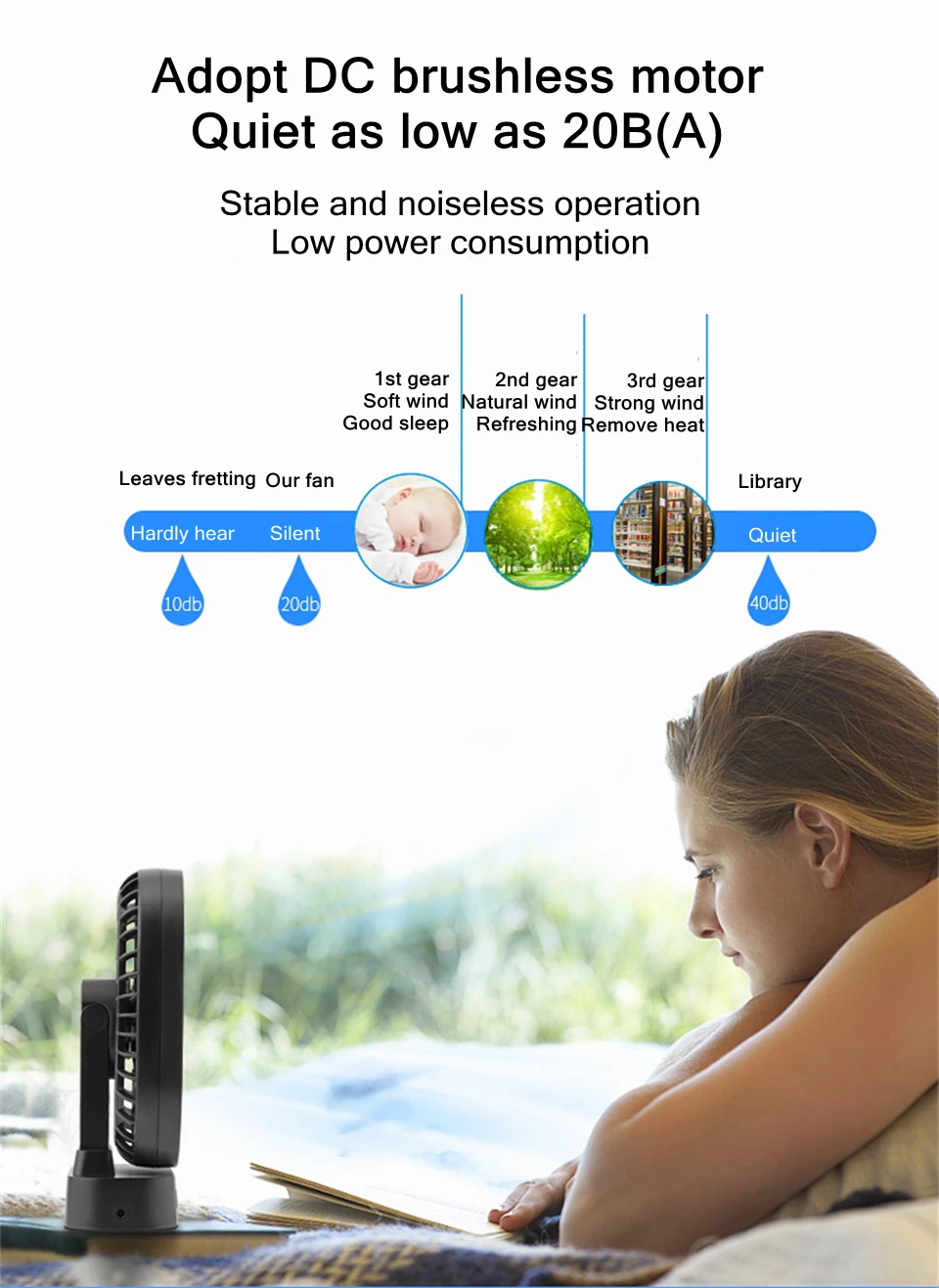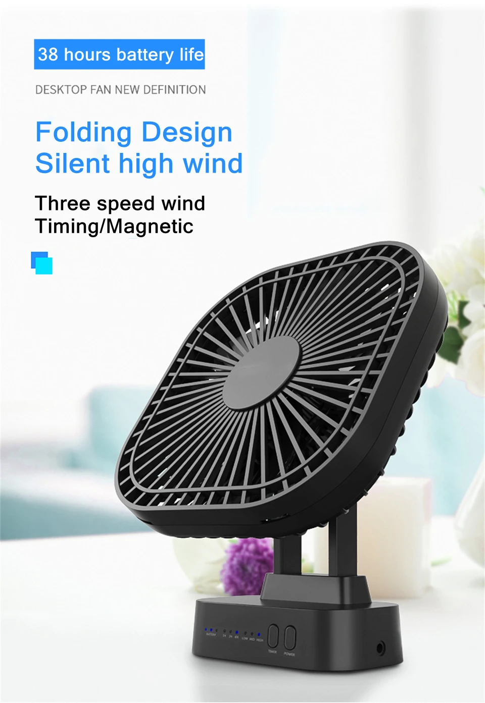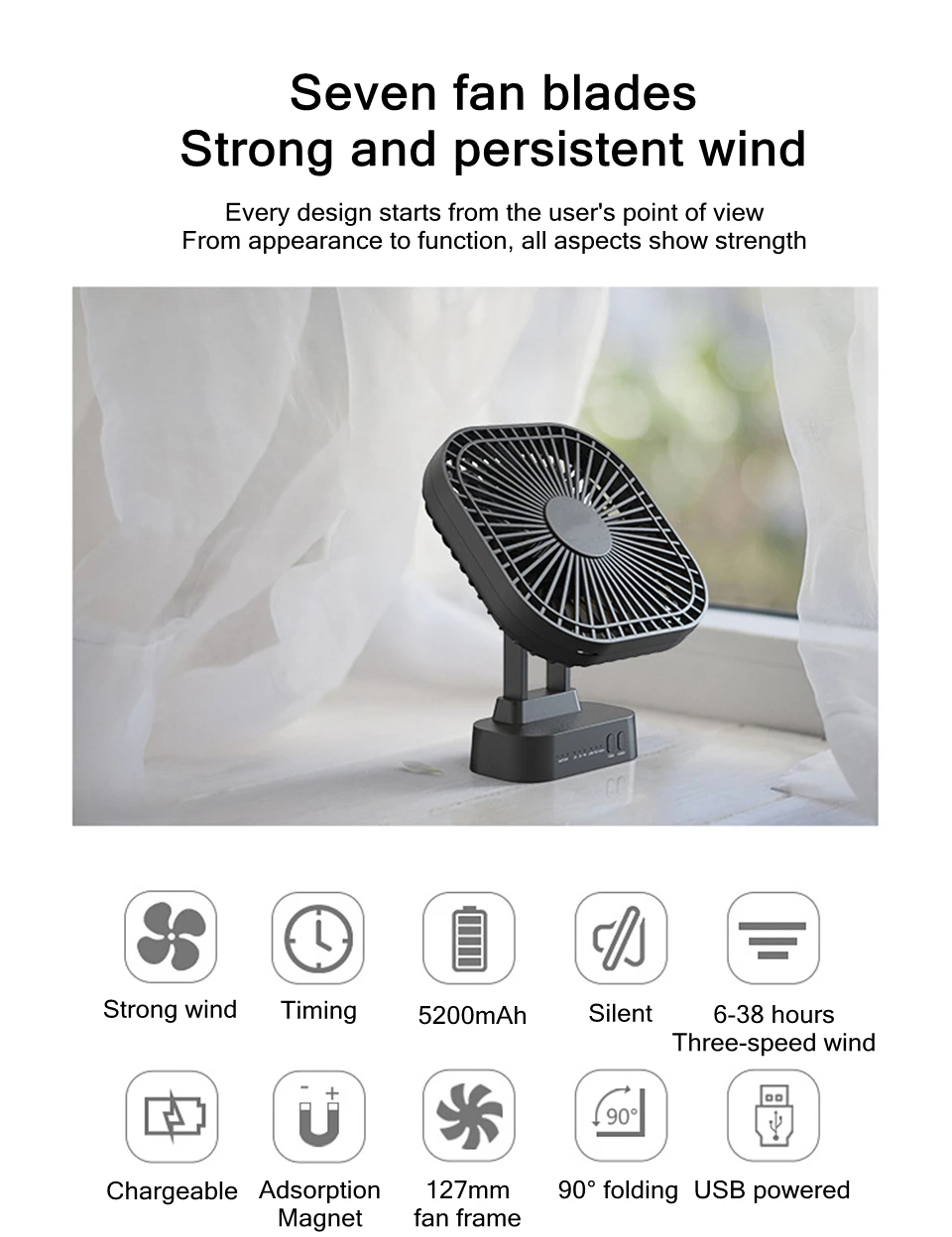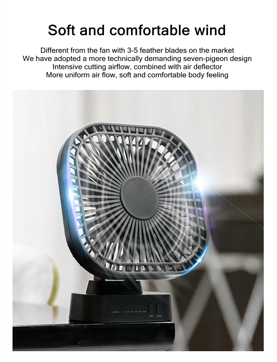 Mini USB Fan Rechargeable Battery Fan with Timer Strong Wind 3 Speed 7 Fan Leaf Desktop Portable Quiet Office Camping Outdoor