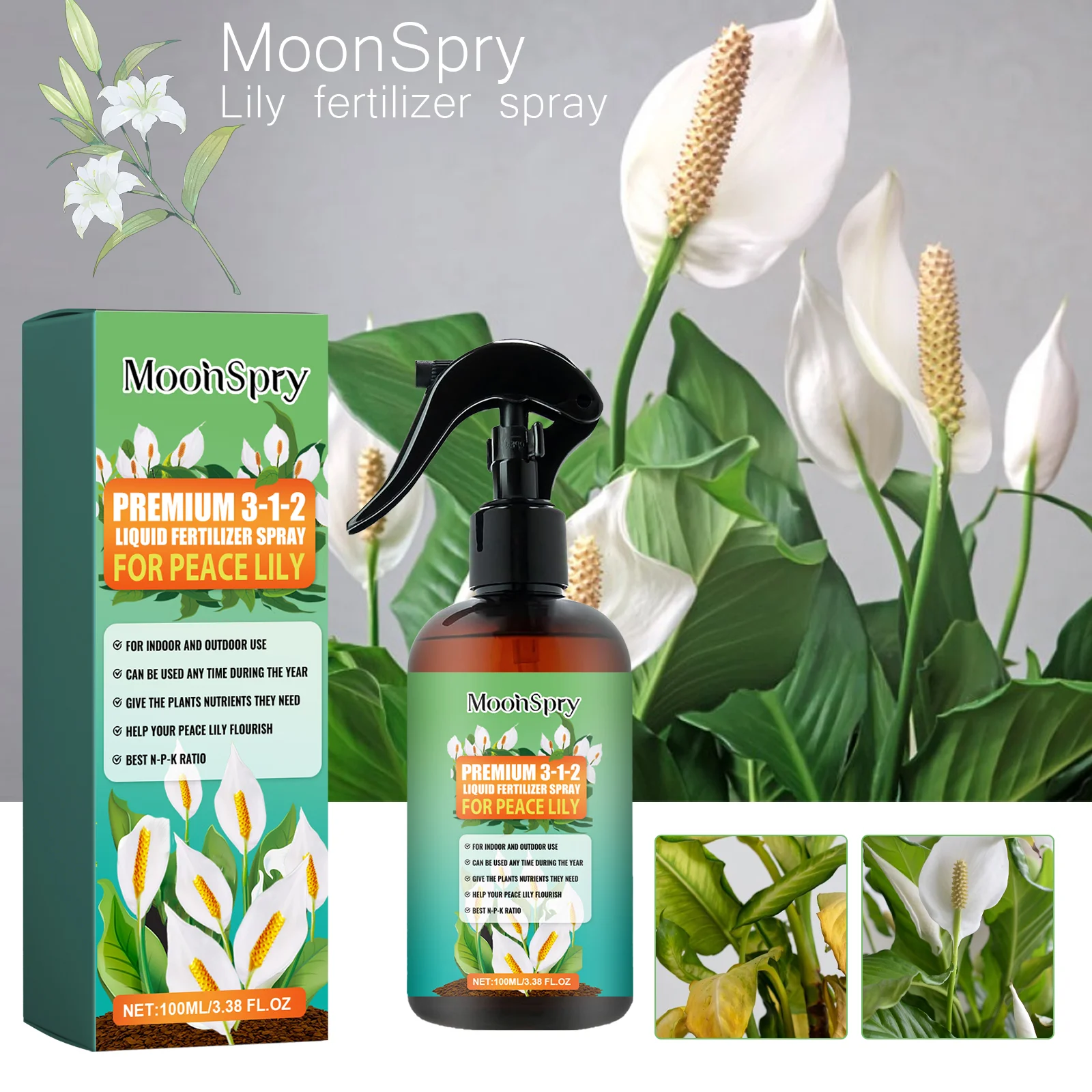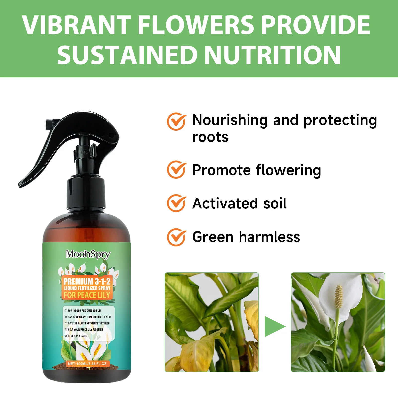 MoonSpry Flower Nutrient Solution Rooting Booster Plant Food Hydroponics Nutrients Flower Blossom Nutrition Liquid Plant Fertilizer Spray 100ml / 200ml / 300ml