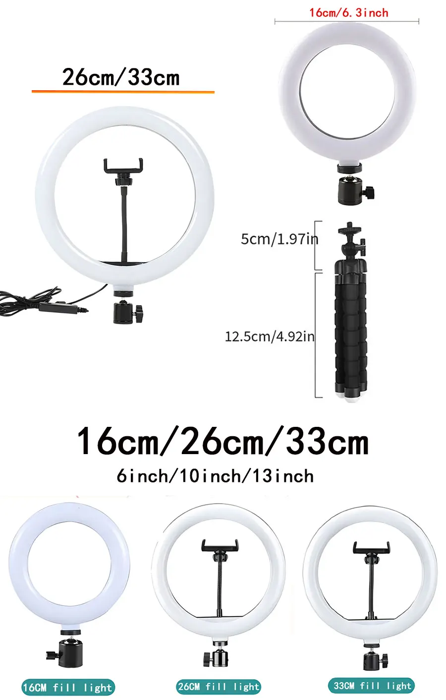 MYOBO 6/10/13 inch Selfie Ring Light Photography Fill Light Led Ring Lamp Ringlight for Video Record Live Broadcast Selfie Lamp