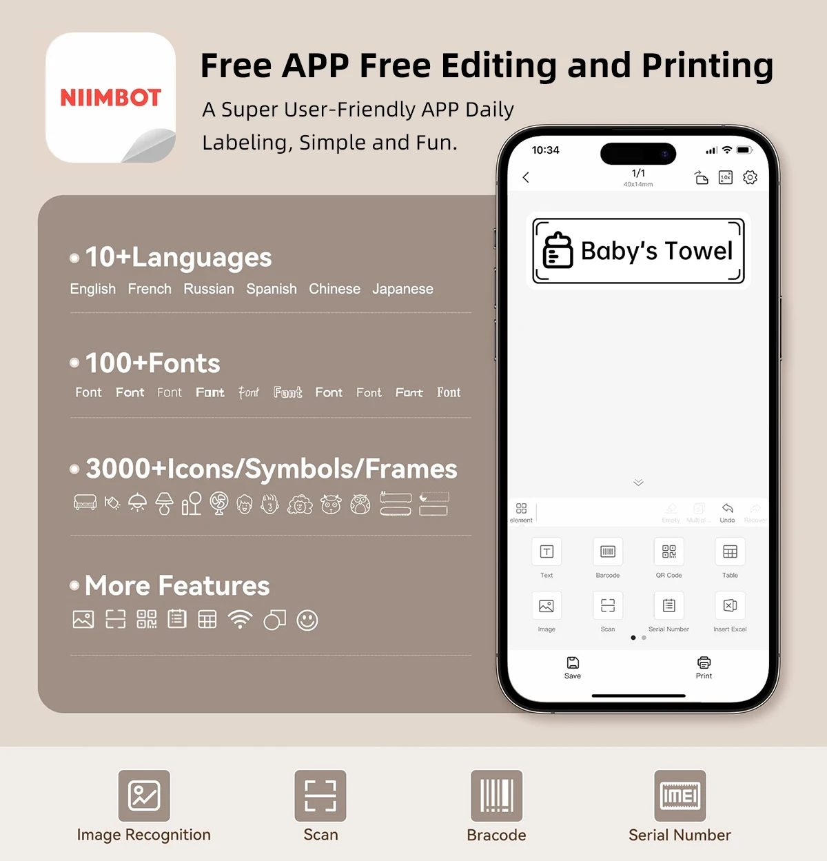 This NIIMBOT app of sticker printer provides a variety of free templates, containing texts, symbols, logos, barcodes, QR codes, images, time, etc.Easy to create various cute labels from your smartphone. Supports up to 15mm printing width and various label sizes.