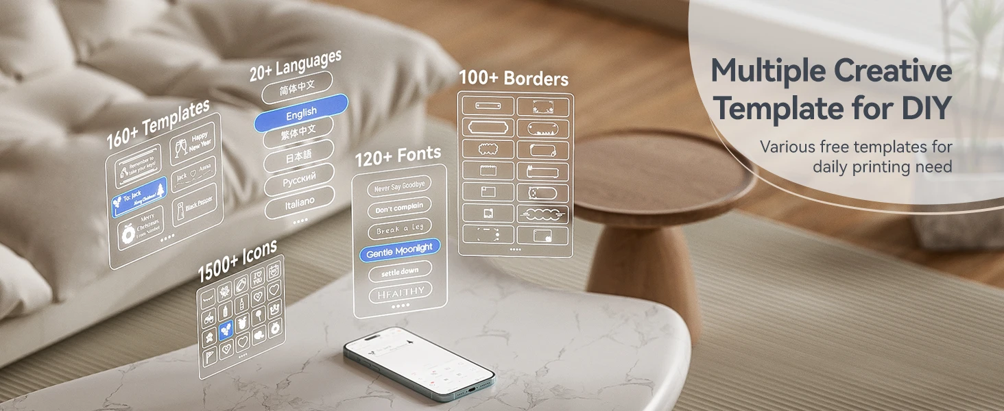This NIIMBOT app of sticker printer provides a variety of free templates, containing texts, symbols, logos, barcodes, QR codes, images, time, etc.Easy to create various cute labels from your smartphone. Supports up to 15mm printing width and various label sizes.