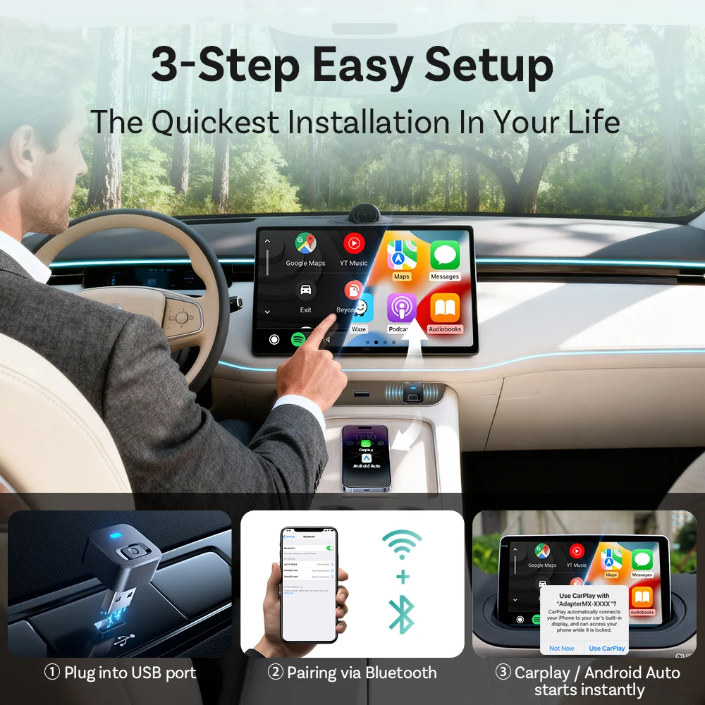 Activate Siri or Google Assistant hands‑free to navigate, play tunes, or send messages on the fly. And support for steering‑wheel button control (including skip tracks, answer calls), your wireless CarPlay adapter for iPhone and android auto wireless adapter makes every drive smoother and safer.