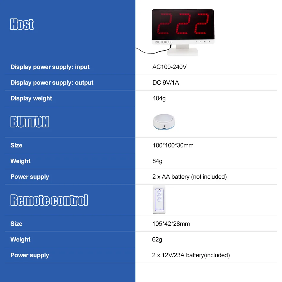 - Display power supply: input: AC100-240V, output: DC 9V/1A