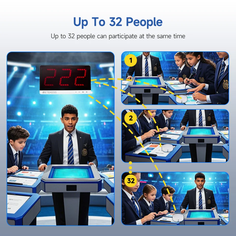 TM101 can support 32 people answering questions at the same time! Whether it is a classroom question and answer session or a team competition, everyone can participate without worrying about insufficient buzzers!