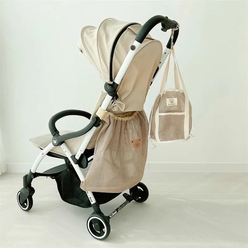 Reusable Stroller Hanging Bag Summer Mesh Stroller Bag Nappy Organizer Baby Items Diapers Pouch Large Capacity Cart Accessories