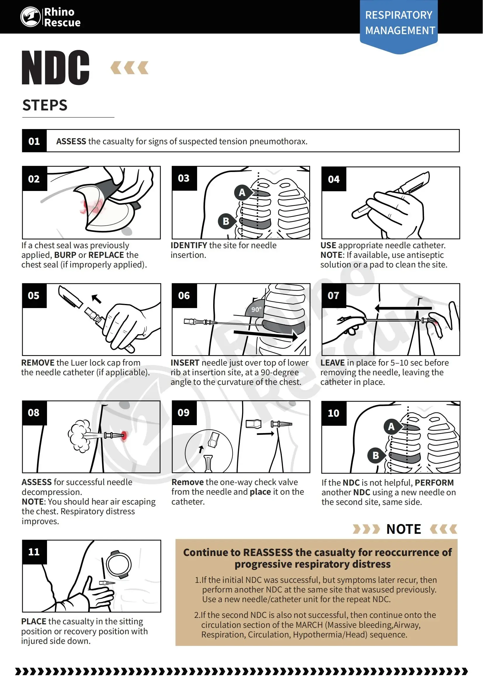 RHINO RESCUE Pneumothorax Needle Trauma Medical Ifak Chest Cathether Needlecatheter 14GA Needle Decompression EDC First Aid Kit