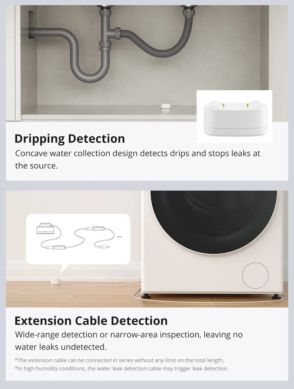 【Extended Detection Support】Used with water leak detection cable( purchase sensor kit), whether it's wide-range detection or narrow-area inspection, water leaks can be detected. The extension cable can be connected in series without any limit on the total length.