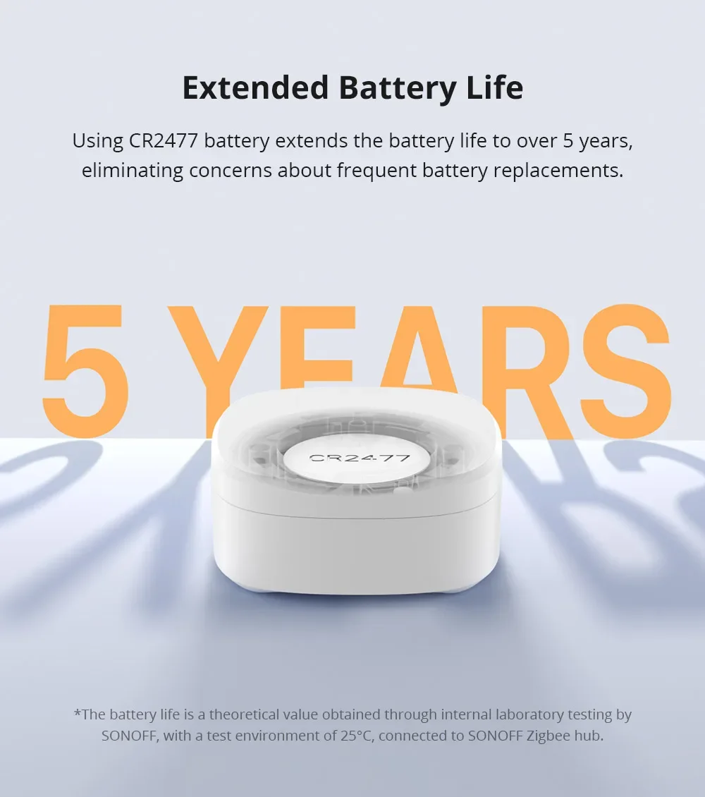 【5-Year Battery Life】Powered by CR2477 battery extends the battery life to over 5 years, eliminating concerns about frequent battery replacements.