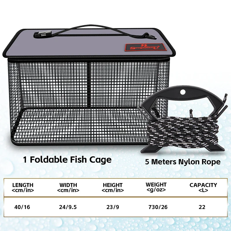 Sougayilang Foldable Fishing Cage Net Fish Carp Bait Cage Shrimp Basket Fish Crayfish Lobsters Catcher Tank Trap Mesh Network