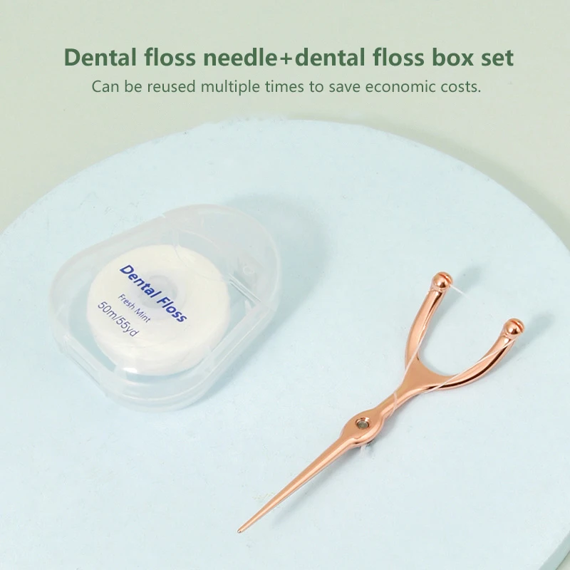 Stainless Steel Toothpick Dental Floss Reusable For Y Shape Flossing Holder Set Portable ECO-friendly Teeth Cleaning Tools