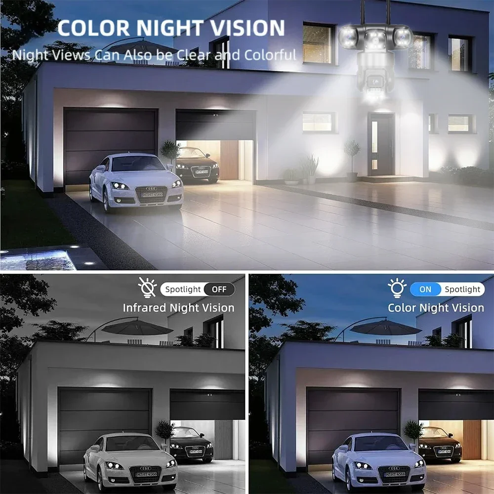 The surveillance camera supports night vision and infrared night vision modes as well as full color mode, and supports timed white light (to ensure that the camera video is clearer when it's dark).