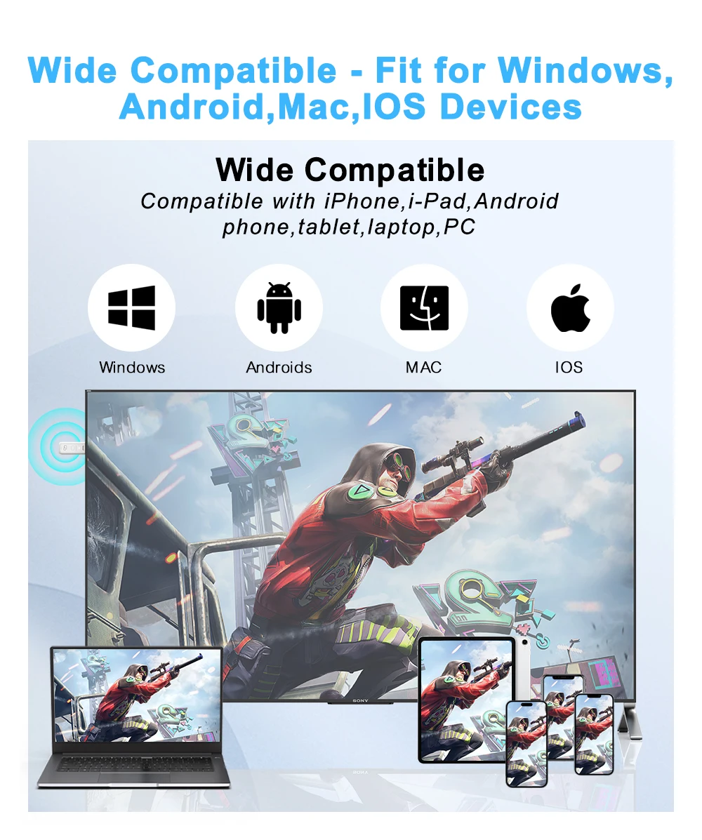 ✨【Support Performance 】 Supports HDCP1.2 standard, supports wireless 802.11a/n, and supports 2.4G/5G dual frequency transmission