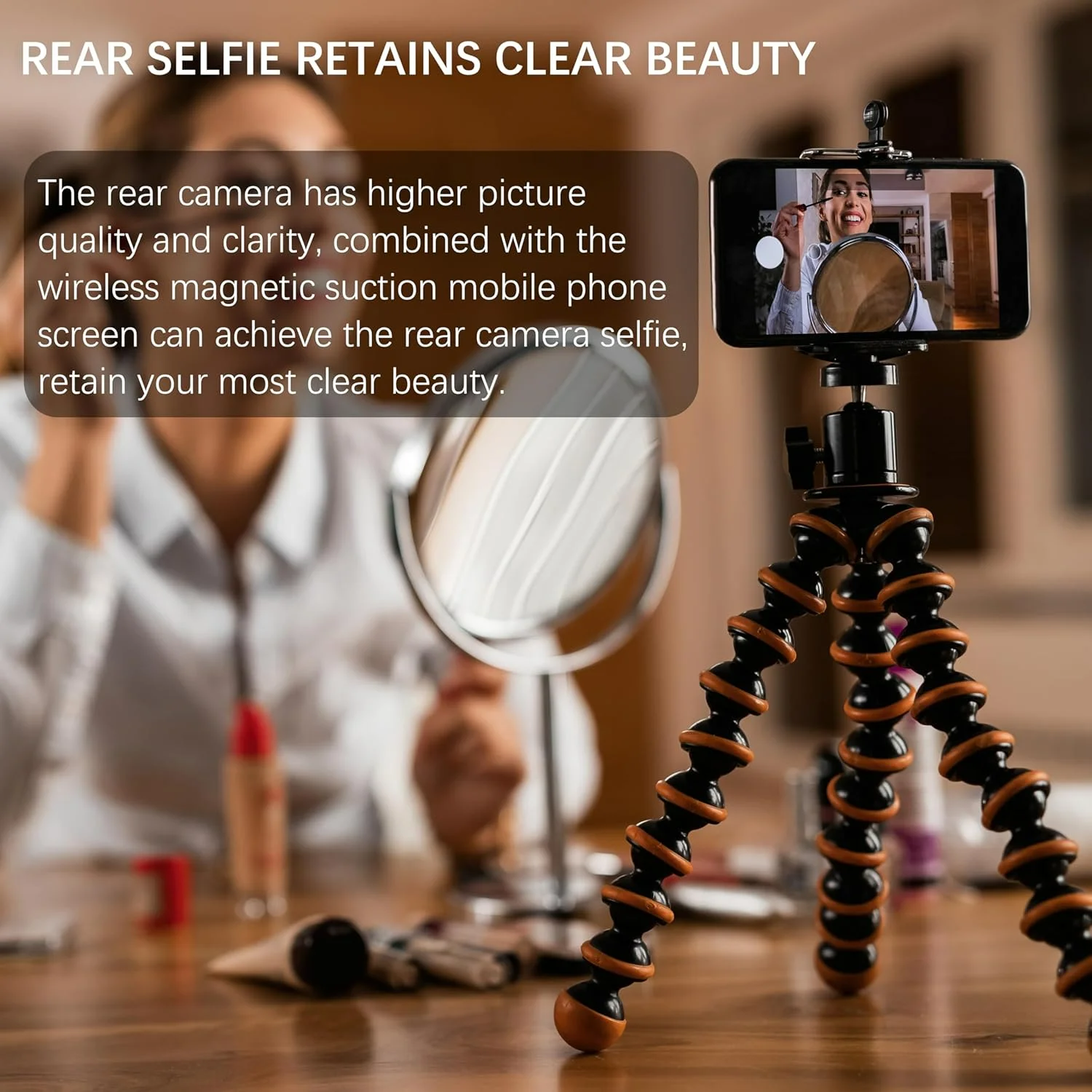 【Compatibility &Portable 】Use Screen Mirror Tech Compatible with a wide range of smart phones for iPhone Samsung Galaxy, and More, making it a convenient choice for content creators and Bloggers.