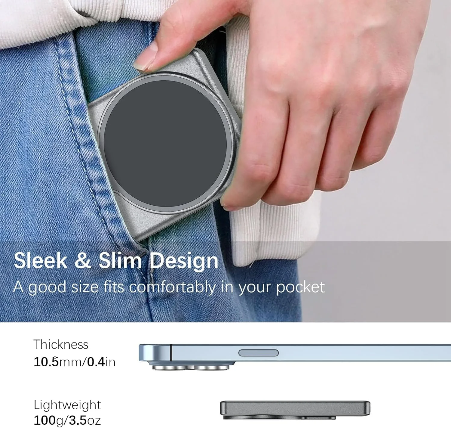 【Magnetic Mount】 Features magnetic mount that easily attaches to phone With Magnetic Back for iPhone 12/13/14/15/16 series, enabling hands-free recording and a stable, adjustable viewing angle.